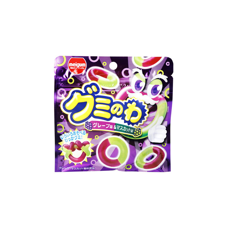 | Details | Ingredients: Starch syrup (manufactured in Japan), sugar, gelatin, concentrated muscat grape juice, concentrated grape juice, edible oil and fat, starch/sorbitol, acidulant, modified starch, flavors, coloring (gardenia, flavonoid), brightener, (some include gelatin). |
