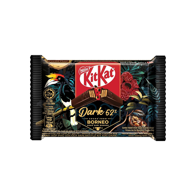 | Details | Total Product Shelf life: 12 months Ingredients: Dark Chocolate [Cocoa Mass, Sugar, Cocoa Butter, Milk Fat (Cow’s Milk), Emulsifiers (Soya Lecithin, Polyglycerol Polyricinoleate), Natural Flavouring], Wafer [Wheat Flour, Sugar Icing and Sugar, Vegetable Fat and Oil (Palm Kernel Stearin, Palm, Shea, Illipe), Cocoa Powder, Milk Solids (Cow’s Milk), Stabilizers (Sodium Bicarbonate, Calcium Carbonate), Cocoa Butter, Cocoa Mass, Dried Glucose Syrup, Emulsifiers (Soya Lecithin, Polyglycerol Polyricinoleate), Natural Flavouring]. |