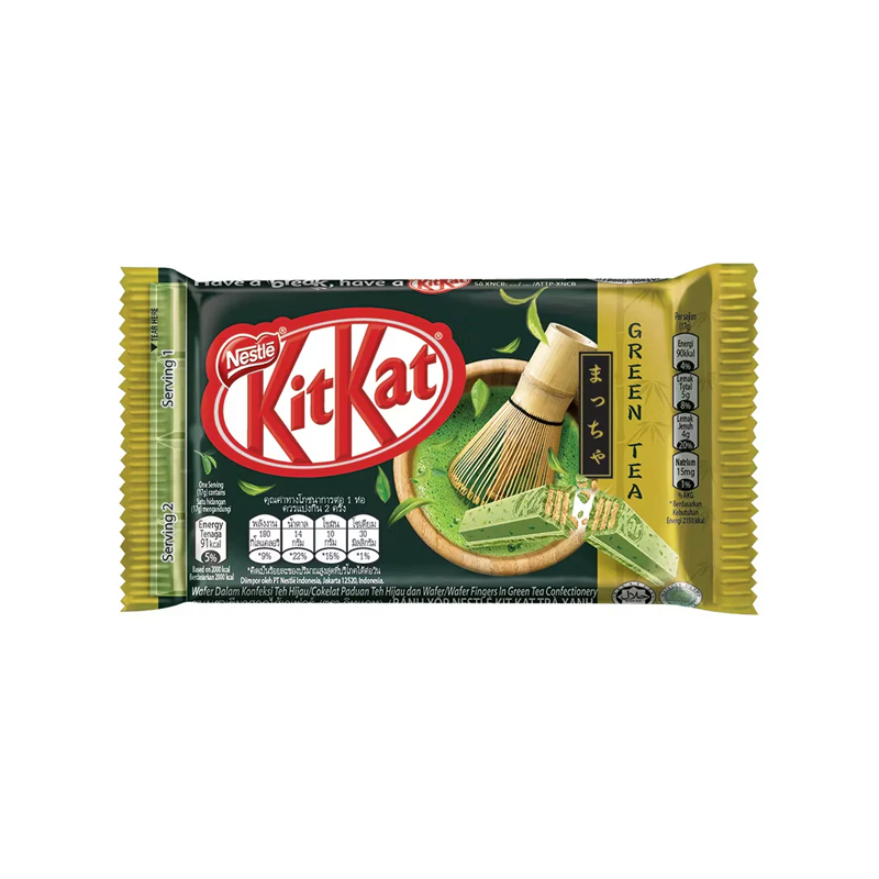 | Details | Total Product Shelf life: 12 months Ingredients: Confection [Vegetable Fat and Oil (Palm, Shea, Sal, Illipe), Sugar, Milk Solids (Cow’s Milk), Lactose (Cow’s Milk), Green Tea Powder (1.5%), Emulsifiers (Soya Lecithin, Polyglycerol Polyricinoleate), Natural Flavouring], Wafer (27%) [Wheat Flour, Palm Kernel Stearin, Maltodextrin, Milk Solids (Cow’s Milk), Sugar Icing and Sugar, Green Tea Powder (0.8%), Stabilizers (Calcium Carbonate, Sodium Bicarbonate), Iodized Salt], Biscuit [Wheat Flour, Sugar, Palm Oil, Emulsifier (Soya Lecithin), Salt], Green Tea Leaves (0.4%). |